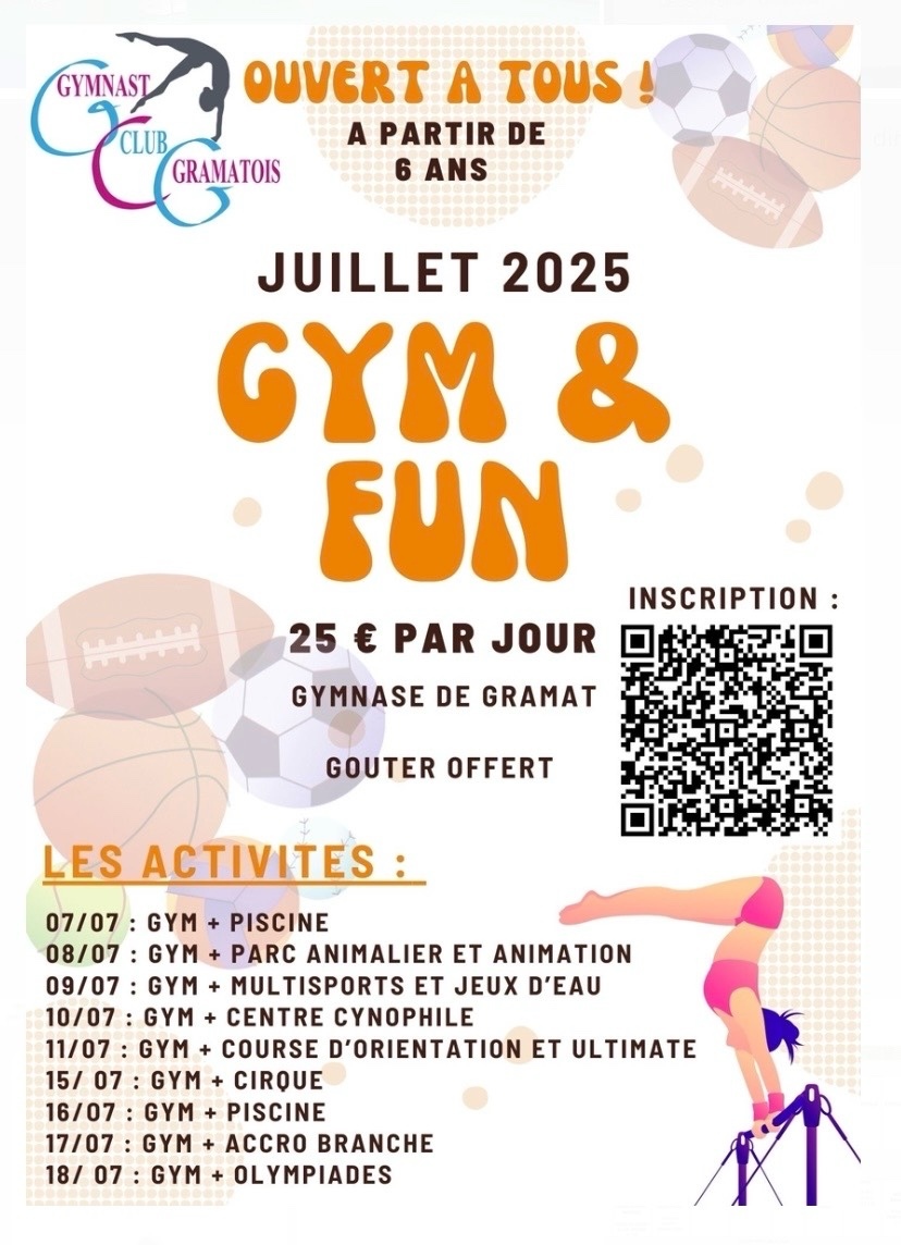 Mais la gymnastique ne sera pas la seule au rendez-vous ! Des jeux collectifs, des parcours d’agilité, des défis sportifs et des moments de détente viendront rythmer cette semaine riche en découvertes. (Piscine, Accro Branche, Multisports, Cirque....)